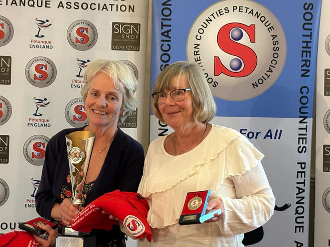 For over 35 years the Southern Counties Pétanque Association (SCPA) has been hosting its Awards Night for Clubs from across the Southern regions attending the dinner and presentation evening on 17 January. This year for the first time it was held at the Avisford Park Hotel near Arundel and the occasion was well received. The SCPA Awards Night celebrates individual, team, club and international achievements over the2025 season. Arundel Pètanque Club (APC) attended and APC captain Miles and his team proudly collected their Champions Trophies for winning the 6-a-side and 9-a-side League titles in their respective Divisions and gaining promotion in both. Both league teams were dominant over the season and played exceptionally high quality pétanque. Kerry (APC) and Angela (APC) collected their winners trophy for the 3rd year running by winning the International Women's Day doubles title a great achievement against stiff opposition. Arundel Pétanque Club can be rightly proud of their achievements over the 2025 season and aim to continue the upward trend for the 2026 season.